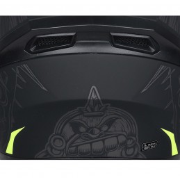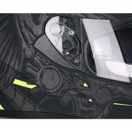 Integrale dalle linee moderne e spigolose con spoiler posteriore Visiera esterna con predisposizione per lente Pinlock 70 Occhiale interni extra fumè a scomparsa Sistema di aerazione air Stream System Interni estraibili e lavabili con deflettore paranaso e deflettore paramento