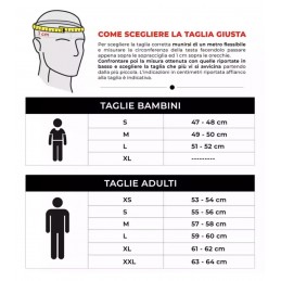 Realizzato con una calotta appositamente creata per i bambini 4 taglie a copertura delle differenti fasce di età Con visiera sagomata ad occhiale Interni e guanciali estraibili e lavabili